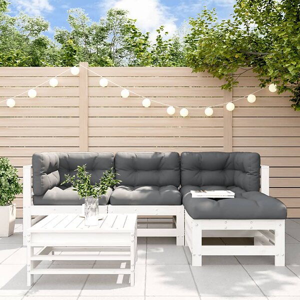 vidaXL Loungegrupp för trädgården med dynor 5 delar vit massivt trä 3185802