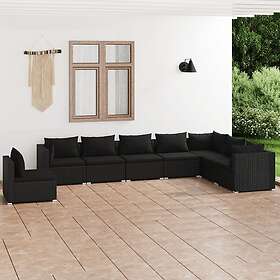 vidaXL Loungegrupp för trädgården med dynor 8 delar konstrotting svart 3102368
