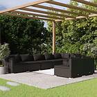 vidaXL Loungegrupp för trädgården med dynor 8 delar konstrotting svart 3102400