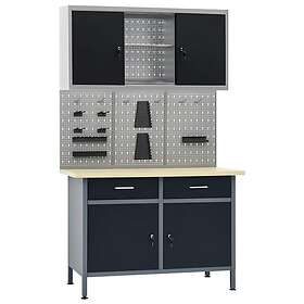 vidaXL Arbejdsbænk med tre vægpaneler og et skab 3053433