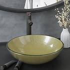 vidaXL Handfat med kran och bottenventil guld härdat glas 3098462