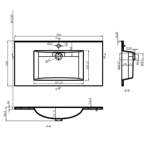 vidaXL Inbyggt handfat 900x460x130 mm SMC vit 146518