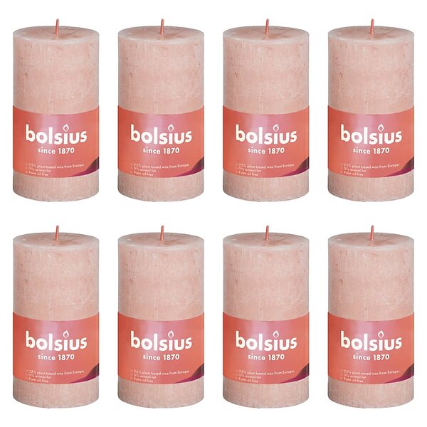 Bolsius rustikke søjlestearinlys Shine 8 stk. 100x50 mm gammelrosa
