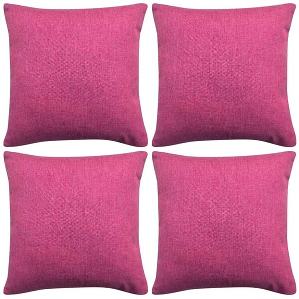 vidaXL Kuddöverdrag 4 st linne-design 80x80 cm rosa 131572