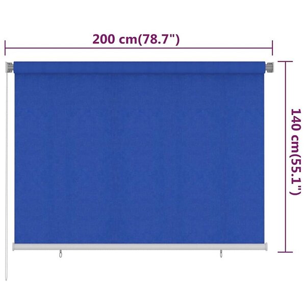 vidaXL Rullgardin utomhus 200x140 cm blå HDPE 312842