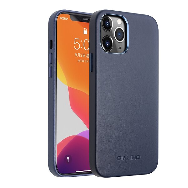 QIALINO iPhone 12 Pro Max äkta läder Hårda skal