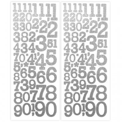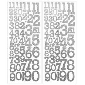 Glitterstickers 10 x 24 cm Silver Siffror 2 ark