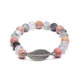 Kristalloteket Armband Rodonit och Grå Kvarts med Fjäder 8mm