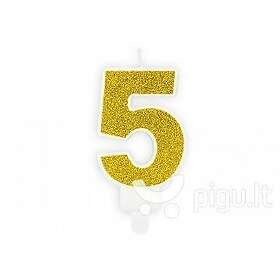 PartyDeco Tårtljus Nummer 5 Guld