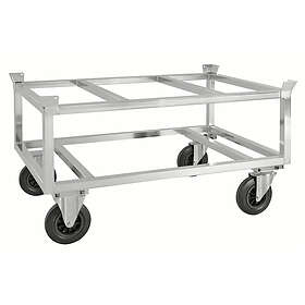 Kongamek Pallvagn med pallstyrning 1246x846x700mm 800kg, Elförzinkad, Massivgummihjul, 2 fast 2 länk med broms