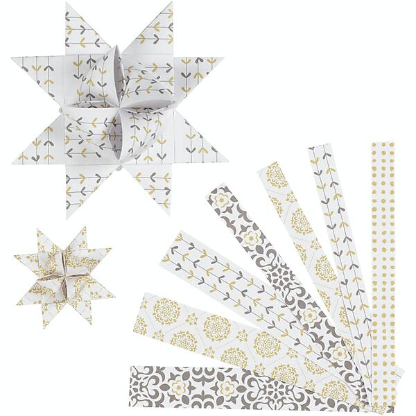 Creativ Company Stjärnstrimlor Guld Vit 48 Strimlor/1 Förp Stjärnstrimlor, guld, vit, L: 44+78 cm, B: 15+25 mm, Dia. 6, 24357