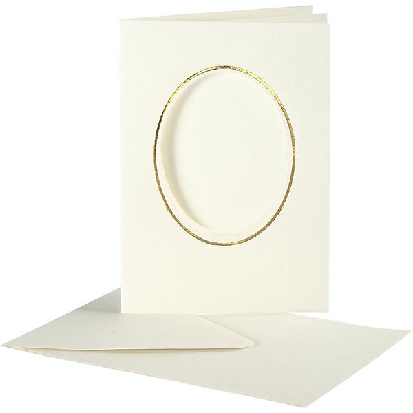 Creativ Company Passepartoutkort med kuvert Rund utskärning Guldkant kuvert, råv