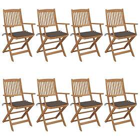 vidaXL Foldbare havestole med hynder Sæt af 8 massivt akacietræ 3074975