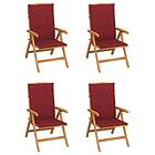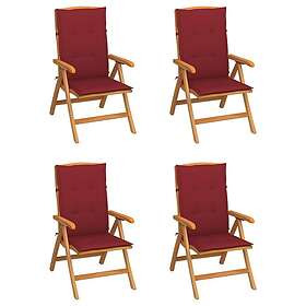 vidaXL Justerbara trädgårdsstolar med dyna 4 st massiv teak 3072639
