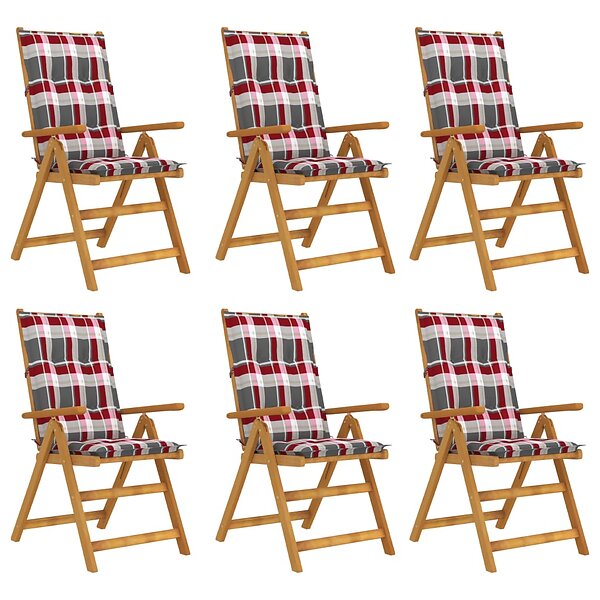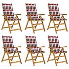 vidaXL Hopfällbara trädgårdsstolar med dynor 6 st massivt akaciaträ 3064147
