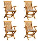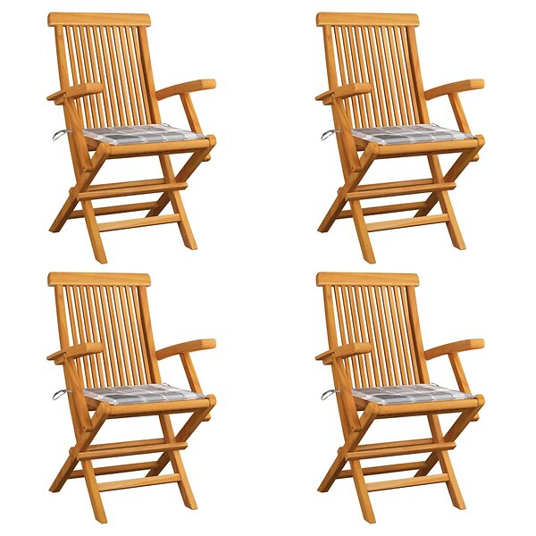 vidaXL 3065631 Havestole Sæt af 4 Massiv teak med hynder Gråt mønster