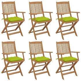 vidaXL Hopfällbara trädgårdsstolar med dynor 6 st massivt akaciaträ 3065487