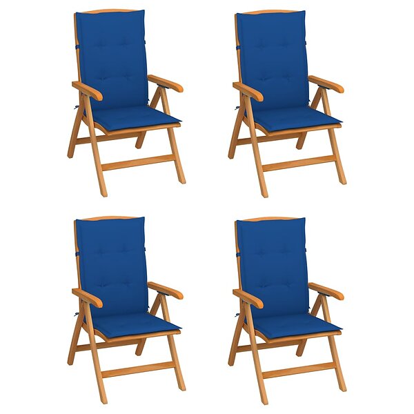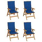 vidaXL Justerbara trädgårdsstolar med dyna 4 st massiv teak 3072640