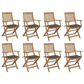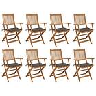 vidaXL Foldbare havestole med hynder Sæt med 8 massivt akacietræ 3075093