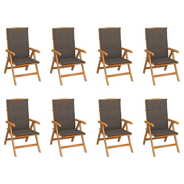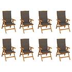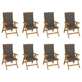 vidaXL Justerbara trädgårdsstolar med dynor 8 st massiv teak 3072698