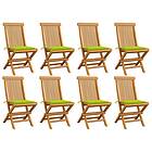 vidaXL Trädgårdsstolar med ljusgröna dynor 8 st massiv teak 3072928