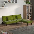 vidaXL Sovesofa 2-sæders med två kuddar och fodskammel ljusgrön sammet 3080627