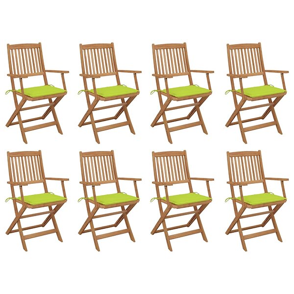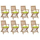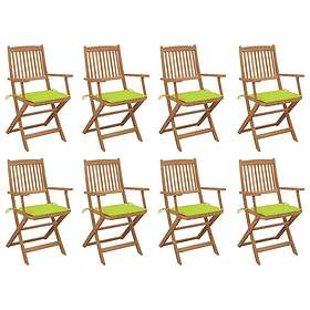 vidaXL Hopfällbara trädgårdsstolar med dynor 8 st massivt akaciaträ 3075096