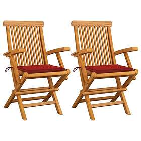 vidaXL Trädgårdsstolar med röda dynor 2 st massivt teakträ 3062493