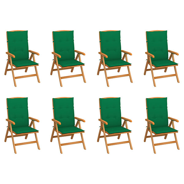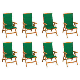 vidaXL Justerbara trädgårdsstolar med dynor 8 st massiv teak 3072695