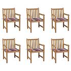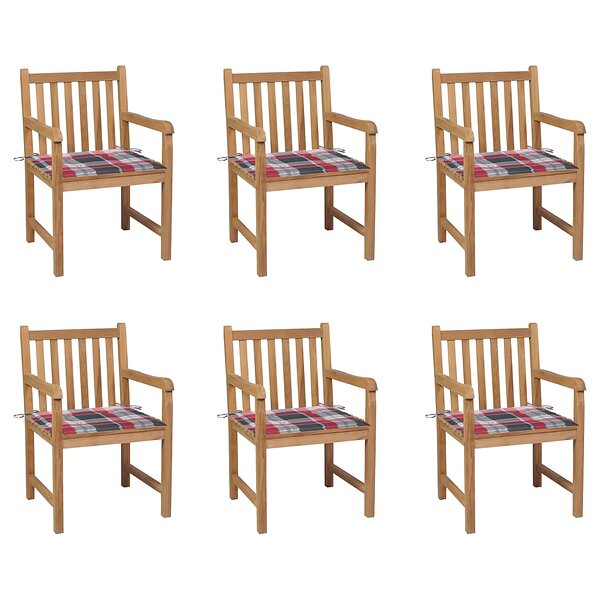 vidaXL Trädgårdsstolar med rödrutiga dynor 6 st massiv teak 3073044