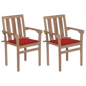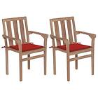 vidaXL Trädgårdsstolar 2 st med röda dynor massivt teakträ 3062214