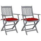 vidaXL Hopfällbara trädgårdsstolar med dynor 2 st massivt akaciaträ 3064503