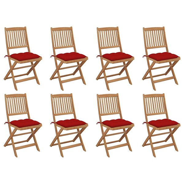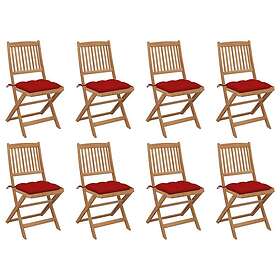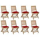 vidaXL Hopfällbara trädgårdsstolar med dynor 8 st massivt akaciaträ 3075134