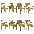 vidaXL Stapelbara trädgårdsstolar med dynor 8 st massiv teak 3073459