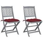 vidaXL Hopfällbara trädgårdsstolar med dynor 2 st massivt akaciaträ 3064560