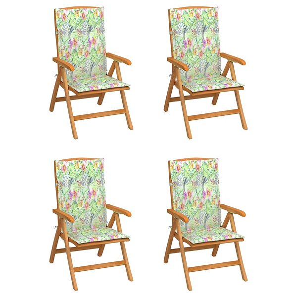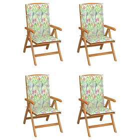 vidaXL Justerbara trädgårdsstolar med dyna 4 st massiv teak 3072642
