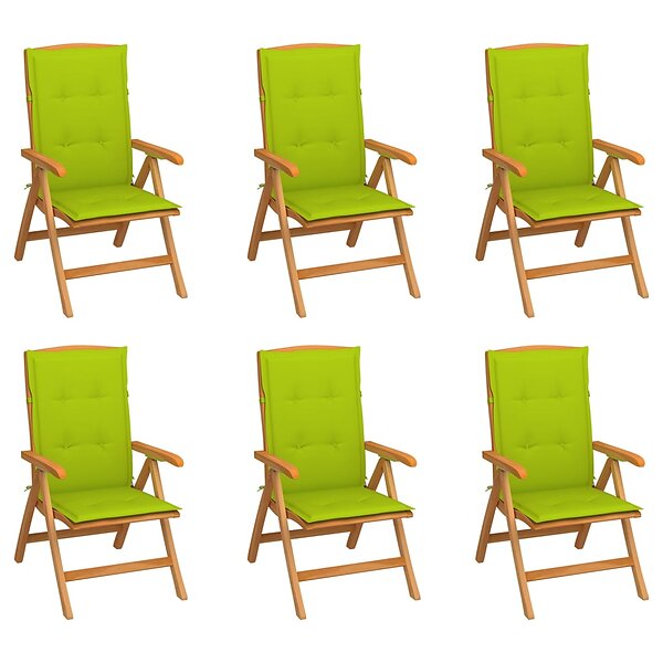 vidaXL Justerbara trädgårdsstolar med dynor 6 st massiv teak 3072671