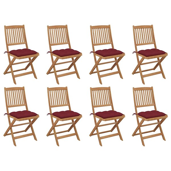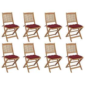 vidaXL Hopfällbara trädgårdsstolar med dynor 8 st massivt akaciaträ 3075137