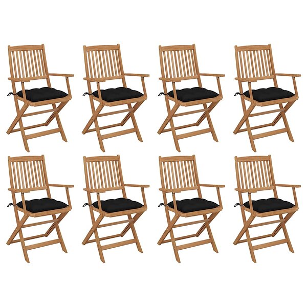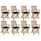 vidaXL Hopfällbara trädgårdsstolar med dynor 8 st massivt akaciaträ 3075107
