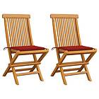 vidaXL Trädgårdsstolar med röda dynor 2 st massivt teakträ 3062466