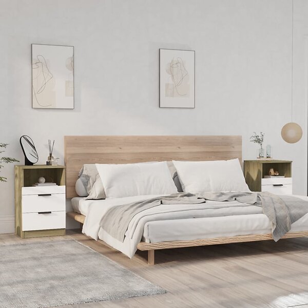 vidaXL Sängbord 2 st vit och sonoma-ek konstruerat trä 811243