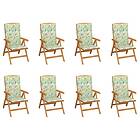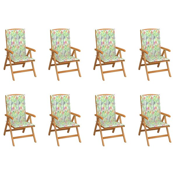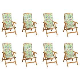 vidaXL Justerbara trädgårdsstolar med dynor 8 st massiv teak 3072702