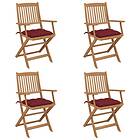 vidaXL Hopfällbara trädgårdsstolar med dynor 4 st massivt akaciaträ 3064641