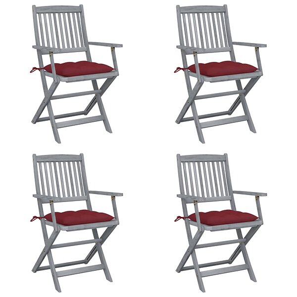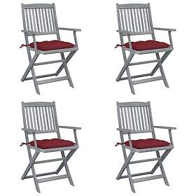 vidaXL Hopfällbara trädgårdsstolar med dynor 4 st massivt akaciaträ 3064533