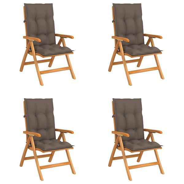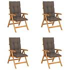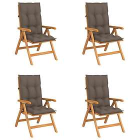 vidaXL Justerbara trädgårdsstolar med dyna 4 st massiv teak 3072653