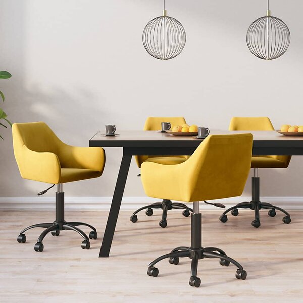 vidaXL Snurrbara matstolar 4 st senapsgul sammet 3090344