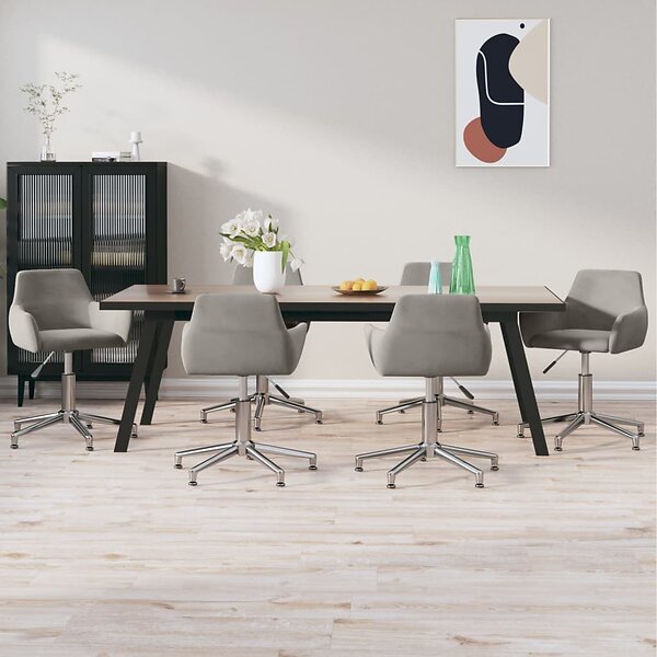 vidaXL Snurrbara matstolar 6 st ljusgrå sammet 3092720