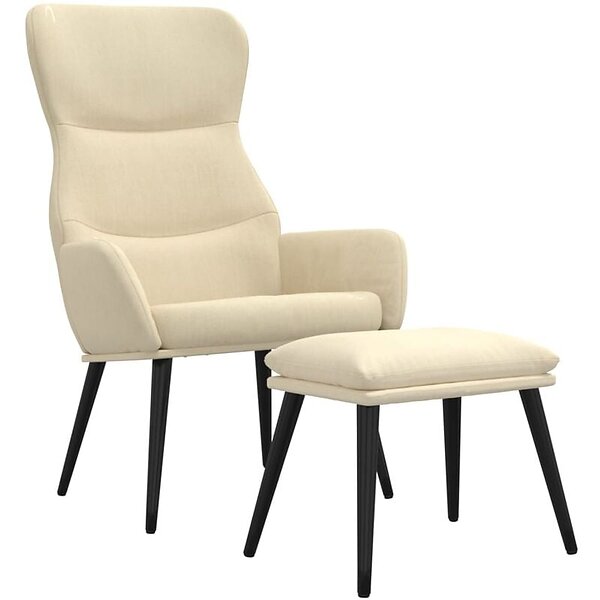 vidaXL Vilstol med fotpall gräddvit tyg 3097431