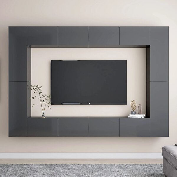 vidaXL TV-skåp 8 delar grå högglans spånskiva 3079510