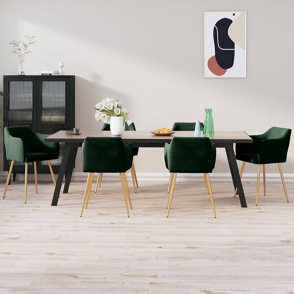 vidaXL Matstolar 6 st mörkgrön sammet 3092810